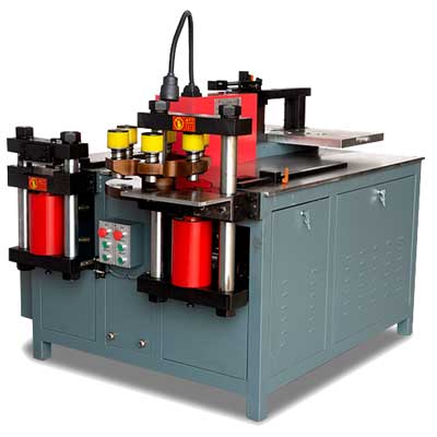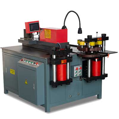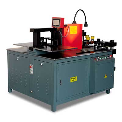 描述:本系列母線加工機有沖、剪、折三個單元,每個加工單元的工作行程均可方便地調節,縮短加工時間,提高生產效率。主要功能為加工不同規格的銅、鋁母線,只需用相應的加工單元,就能方便、快捷的對銅、鋁排進行剪切、沖孔(圓孔、長圓孔),折平彎、立彎、壓花等加工。通過更換模具還可完成壓平、扭麻花、壓電纜接頭,對銅棒進行切斷、壓扁、沖孔、折彎等特殊加工。