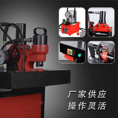 描述:本機安裝有沖孔、剪斷、折彎三個加工工位,主要功能為加工不同規格的銅、鋁母線。工作時,需要選用相應的加工工位,就能方便快捷的對銅、鋁排進行剪切、沖孔(圓孔、長圓孔),折平彎、立彎、U型彎,壓花、壓平、扭麻花、壓電纜接頭等不同的加工。?